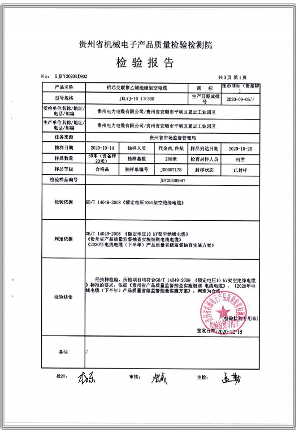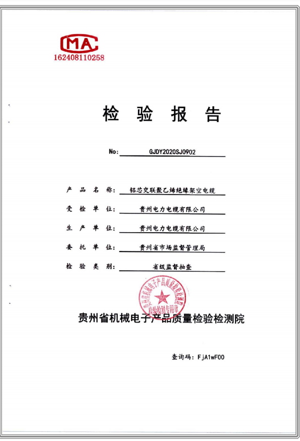 下一篇:鋁芯交聯聚乙烯絕緣聚氯乙烯護套電力電纜 檢驗報告