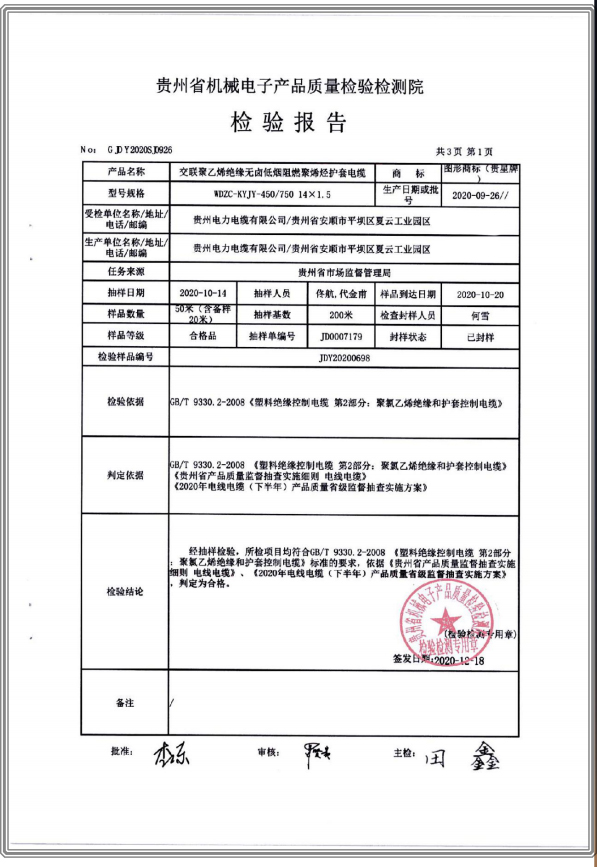 上一篇:鋁芯交聯聚乙烯絕緣聚烯烴護套無鹵低煙阻燃A類電力電纜 檢驗檢測報告